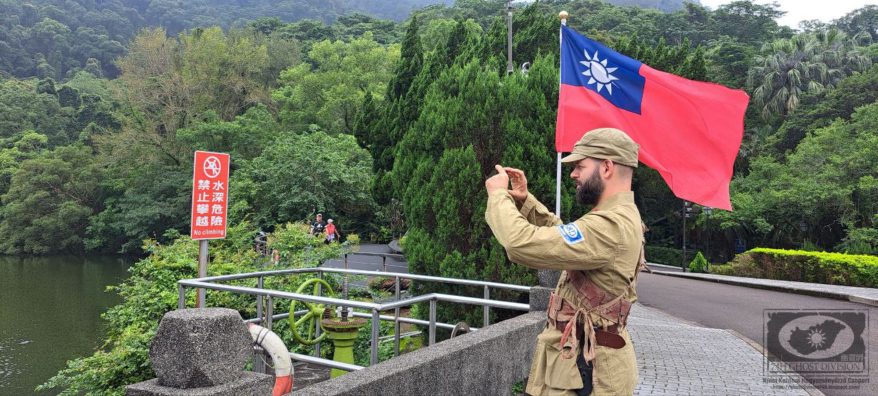 Az indulás előttig meglepetésként tartogattam azt a tényt, miért is törtem magam ennyire, hogy Taiwanra utazhassak. Nyilván bennevolt a hagyományőrzős csoport, hogy Ázsia amióta az eszemet tudom, vonzott mint a mágnes, de volt valami, amit mindig is szerettem volna megvalósítani, amióta csak elkezdtem a hagyőr csoportot csinálni: interjút készíteni egy olyan veteránnal, aki élt és harcolt azokban az időkben. Az esélytelenek nyugalmával kérdeztem meg Zhao barátomat a TRA-nál, hogy esetleg tudna-e egy ilyet összehozni? Hát tudott. A nyolcadik napon az NRA-s egyenruháinkba öltözve indultunk Taipeiből majdnem egészen a sziget közepéig, ahol a veteránotthon található. Előtte várt még ránk egy közbenső úticél, Cihu, ahol Chiang Kai-shek sírhelye tekinthető meg. Sajnos ez csak kívülről látható, évek óta le van zárva, a helyet őrség védi. Be nem jutottunk, de megejtettük a kötelező tisztelgést, majd eljöttünk az amúgy festői szépségű parkból, aminél már az elején is nehézkes volt a bejutás: jópáran ugyanis felismerték az egyenruhát, és mosolyogva jöttek oda beszélgetni, fotózkodni. Főképp én voltam a nagy látványosság, el nem tudták képzelni mit keres itt egy fehér csóka kínai egyencuccban, de a szórólapok meg az angol nyelvű társalgás kellően jól vázolta a szituációt, örömmel fogadták a látogatásomat. Voltak a fotózkodók közt helyiek, de még egy pekingi bácsi is meglátva minket odasietett és tisztelgett, majd kezet fogott velem.